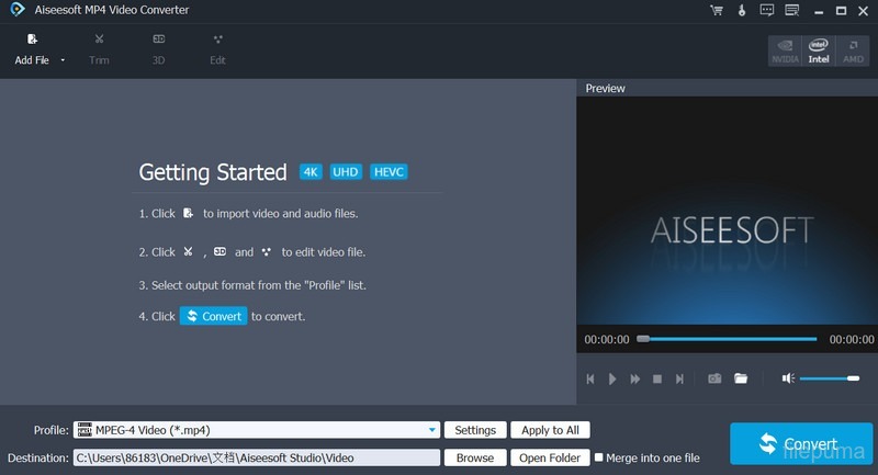 With a clean and straightforward interface, Aiseesoft MP4 Video Converter is easy to use for beginners and experienced users alike. It provides helpful prompts and clear options, making the video conversion process smooth and efficient. Aiseesoft MP4 Video Converter is a reliable solution for converting and editing video files.