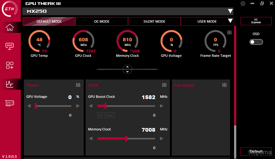 ASUS GPU Tweak III includes an intuitive fan control system that offers both automatic and manual adjustments. Users can set custom fan curves to balance cooling and noise levels, ensuring stable operation under heavy loads. The advanced overclocking features provide precise control over power settings, maximizing GPU potential while maintaining stability.