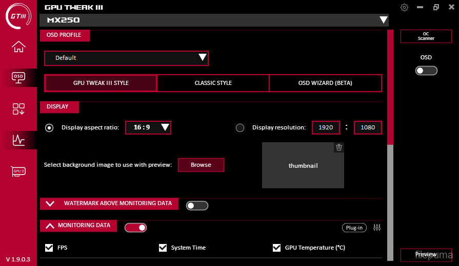 With real-time monitoring, ASUS GPU Tweak III displays critical GPU statistics such as temperature, usage, and frequency, helping users keep track of their system’s performance. The on-screen display (OSD) feature provides in-game monitoring, allowing users to check GPU status without leaving their gameplay. Custom profiles can be created for different applications, enabling automatic switching between performance modes.