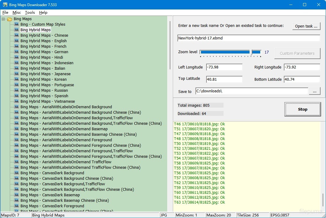 Bing Maps Downloader is a tool designed to download maps directly from Bing Maps and save them to a local drive. It supports multiple map types, including road maps, aerial views, and hybrid maps. The program allows customization of map resolution and area selection, enabling precise control over the portion of the map to download. Users can easily define the latitude and longitude boundaries to capture specific regions.