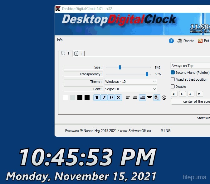 DesktopDigitalClock Portable works efficiently across various systems and doesn't take up much space. Its sleek design and straightforward functionality make it a great addition to any desktop or workspace, keeping you on track throughout your day.