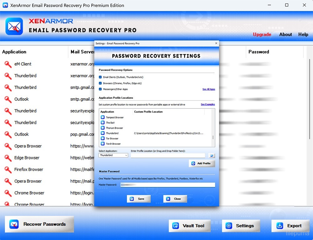 Email Password Recovery Pro includes a range of customizable settings, enabling users to choose specific recovery methods or focus on certain email clients. With its clear instructions and reliable performance, Email Password Recovery Pro serves as a practical tool for anyone needing to recover lost email passwords efficiently.