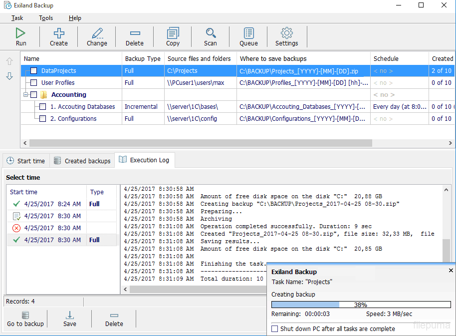 Exiland Backup Standard is a reliable and user-friendly backup solution designed for home users and small businesses. It provides essential tools to protect important files and folders from data loss caused by hardware failures, viruses, or accidental deletion. The software supports both full and incremental backups, allowing users to save storage space while ensuring data safety.