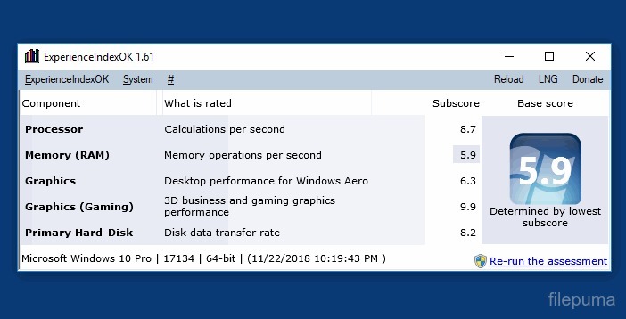 ExperienceIndexOK is a lightweight utility designed to quickly assess the performance of a Windows computer. It provides users with an easy way to view and understand the Windows Experience Index, which measures key hardware components such as processor, memory, graphics, gaming performance, and disk speed. This tool helps users gain insight into their system’s capabilities without navigating through complicated menus or settings.