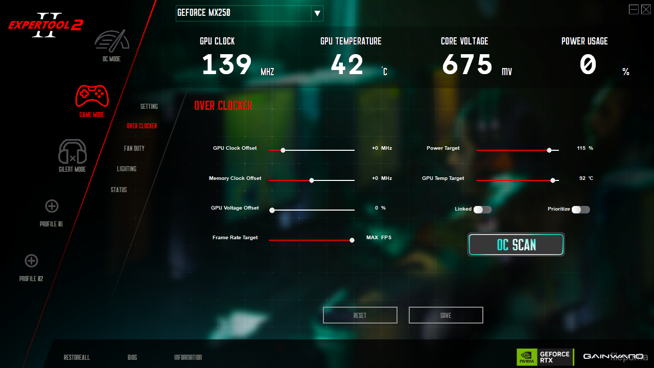EXPERTool is a graphics card utility developed by Gainward for NVIDIA GPUs. It provides users with real-time monitoring of key parameters such as GPU temperature, clock speed, and fan performance. The software helps users keep track of their graphics card’s status, ensuring stable operation and preventing overheating issues.