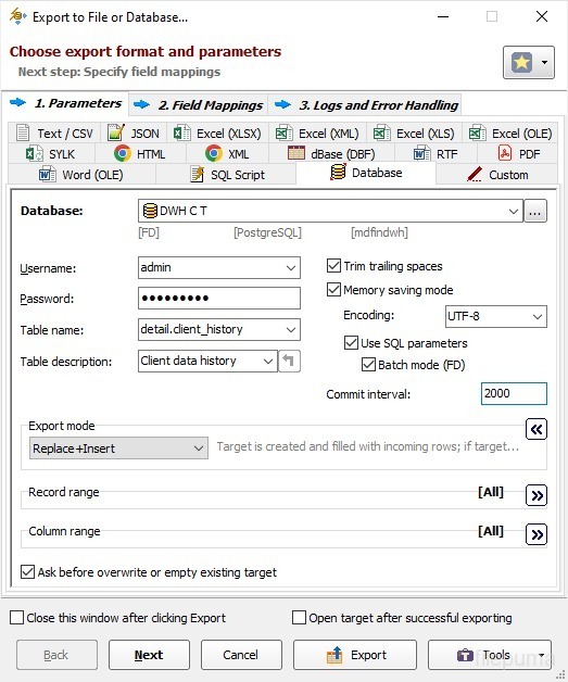 Exportizer is a database export and management tool designed to streamline the process of working with data. It supports various database formats, including DB, DBF, TXT, CSV, and major relational databases, offering users flexibility in managing their data across different platforms. The software is suitable for database professionals, analysts, and users who frequently handle large datasets.