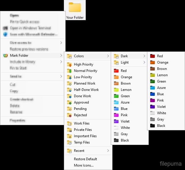 Folder Marker Pro lets users customize folder icons and colors, helping to visually organize files and improve workflow. Instead of relying on standard yellow folders, users can apply color codes, priority flags, or status marks to quickly identify folder content at a glance.