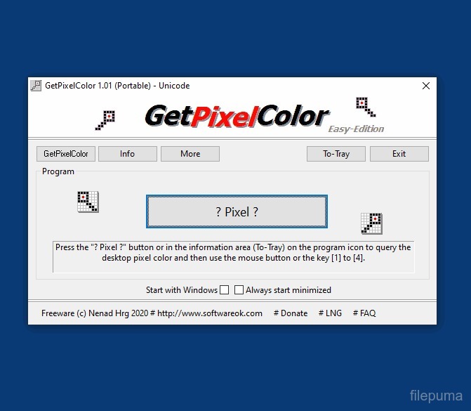 GetPixelColor is a lightweight utility designed to help users accurately identify the color value of any pixel displayed on their screen. It is especially useful for designers, developers, and digital artists who need precise color information during daily work. By simply moving the cursor over a target area, the software instantly captures the pixel’s color data.