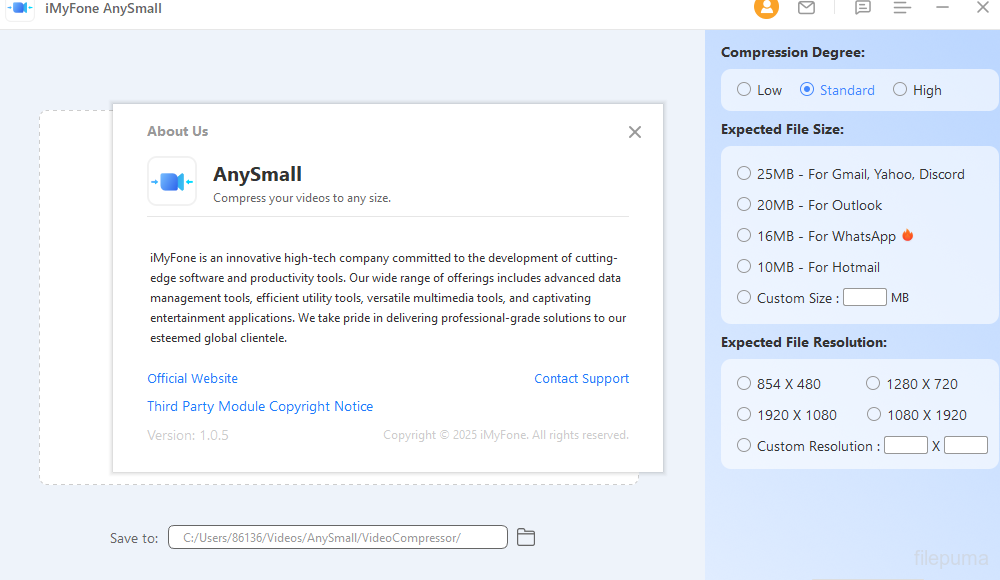 iMyFone AnySmall is a video compressor designed to reduce file sizes without compromising too much on visual quality. It helps users manage large video files by making them easier to store, share, or upload online. The program supports many popular video formats and offers flexible compression levels based on your specific needs.