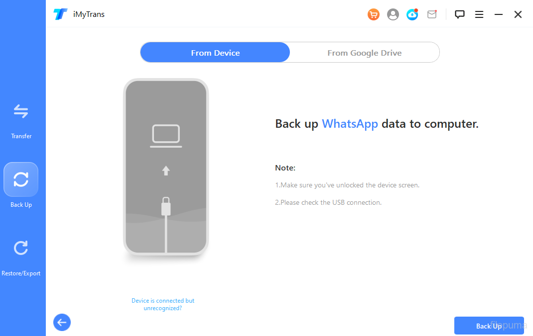 iMyFone iMyTrans allows users to back up WhatsApp data to a computer safely. Backups can be restored to any device without complications, and the process is user-friendly, even for those with minimal technical skills. The clear interface guides users step by step, ensuring a smooth experience.