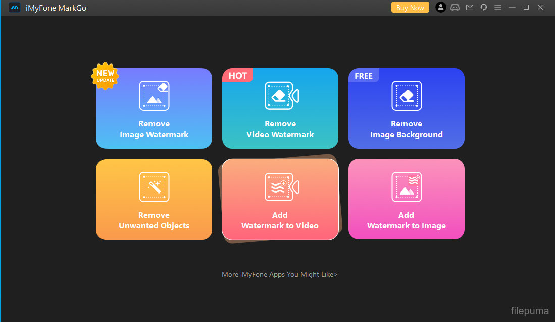 iMyFone MarkGo is a desktop application designed to help users remove or add watermarks from videos and images. With its simple interface, the software makes it easy for beginners to handle watermark-related tasks without needing advanced editing skills. Users can remove unwanted text, logos, or stamps from photos and video clips in just a few steps.