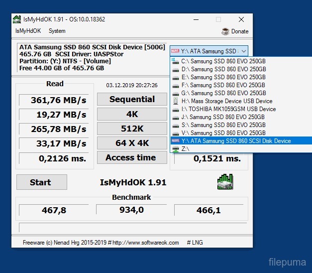 IsMyHdOK can test different types of storage, including HDDs, SSDs, USB flash drives, and memory cards. It performs quick benchmarks and shows results in clear numbers. Users can compare the performance of different drives to see which one works better on their computer.