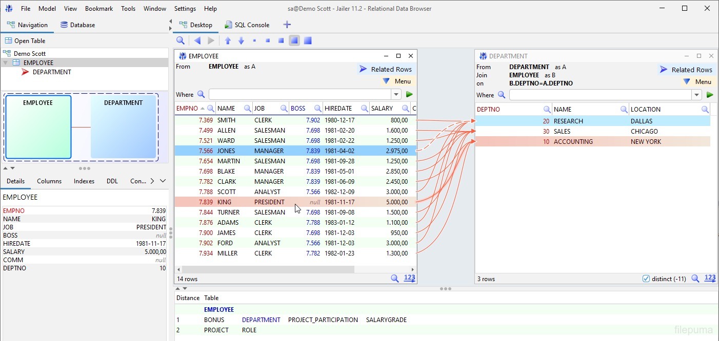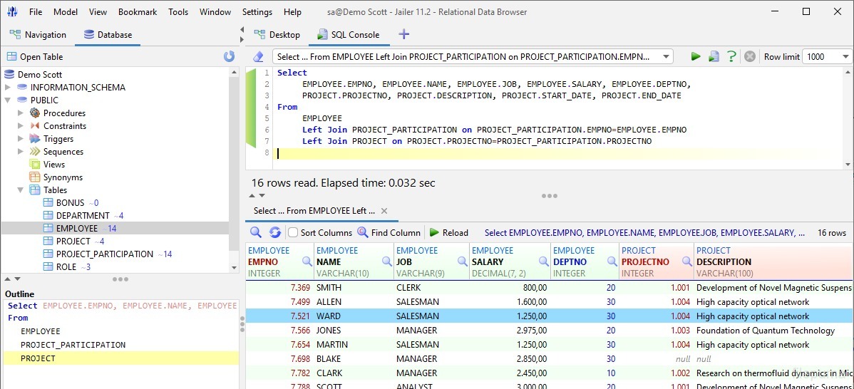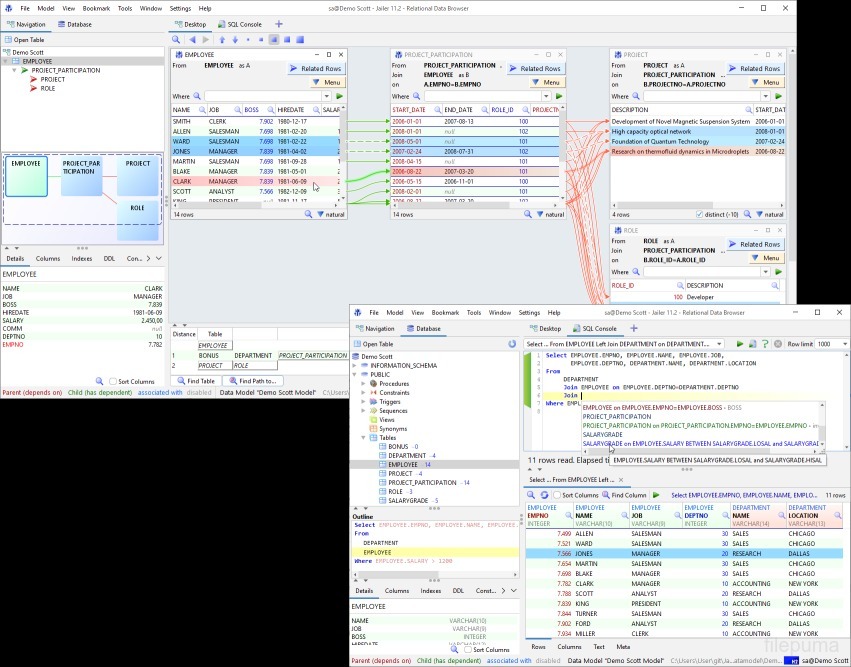 Jailer includes a built-in SQL editor that supports syntax highlighting, auto-completion, and query execution. It allows the creation, modification, and testing of SQL statements without leaving the environment. Complex queries can be executed with detailed feedback, helping maintain data integrity and accuracy.