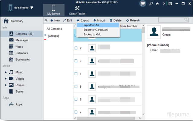 MobiKin Assistant for iOS allows users to manage their contacts and SMS messages efficiently. You can export, import, or delete them directly from your computer, providing a more convenient and organized way to handle your iOS content.