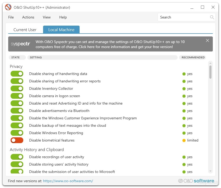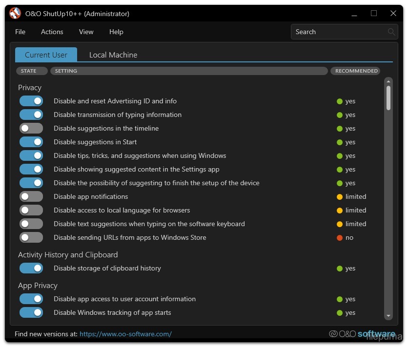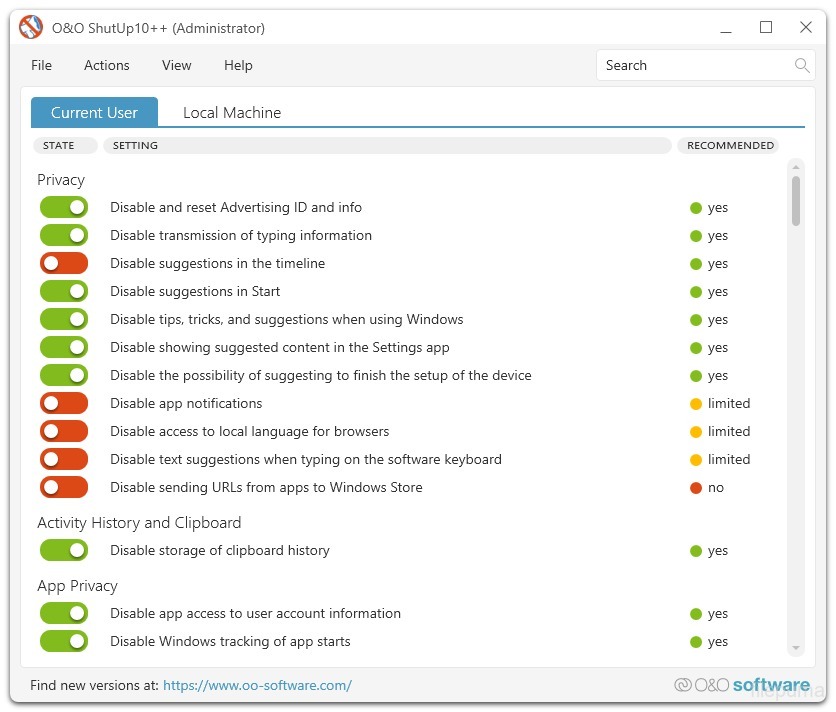 O&O ShutUp10++ doesn't require installation, making it portable and easy to use. Whether you are looking to secure your data or simply enhance your privacy, O&O ShutUp10++ provides an effective, straightforward solution for managing Windows 10 and 11 privacy settings.