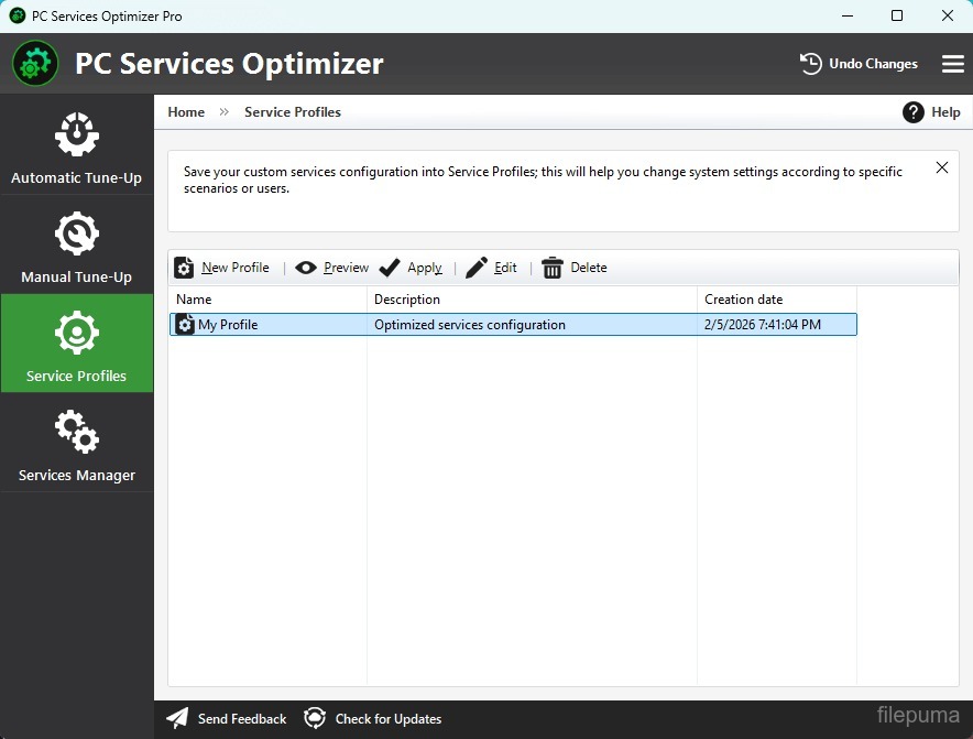PC Services Optimizer provides clear profiles tailored to different usage scenarios, such as gaming, work, or general home use. By adjusting Windows services based on these profiles, PC Services Optimizer reduces resource consumption and helps the system run more smoothly. Users can also create custom configurations, allowing them to enable or disable specific services according to their own needs and preferences.