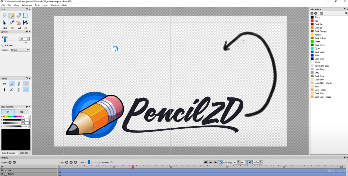 Pencil2D Animation supports both bitmap and vector drawing. Users can sketch rough ideas, create clean lines, and color their drawings directly in the workspace. Tools such as brushes, layers, and timeline controls help organize each frame and keep the animation process smooth.