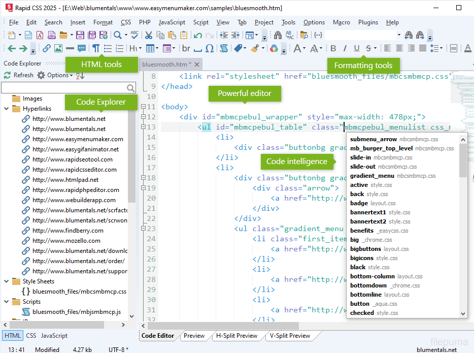Rapid CSS Editor is a lightweight and efficient coding tool designed for web developers who work with HTML and CSS. It provides a streamlined environment where users can write, edit, and preview code all in one place. The software supports various web technologies such as JavaScript, PHP, and LESS, making it suitable for a wide range of front-end development tasks.