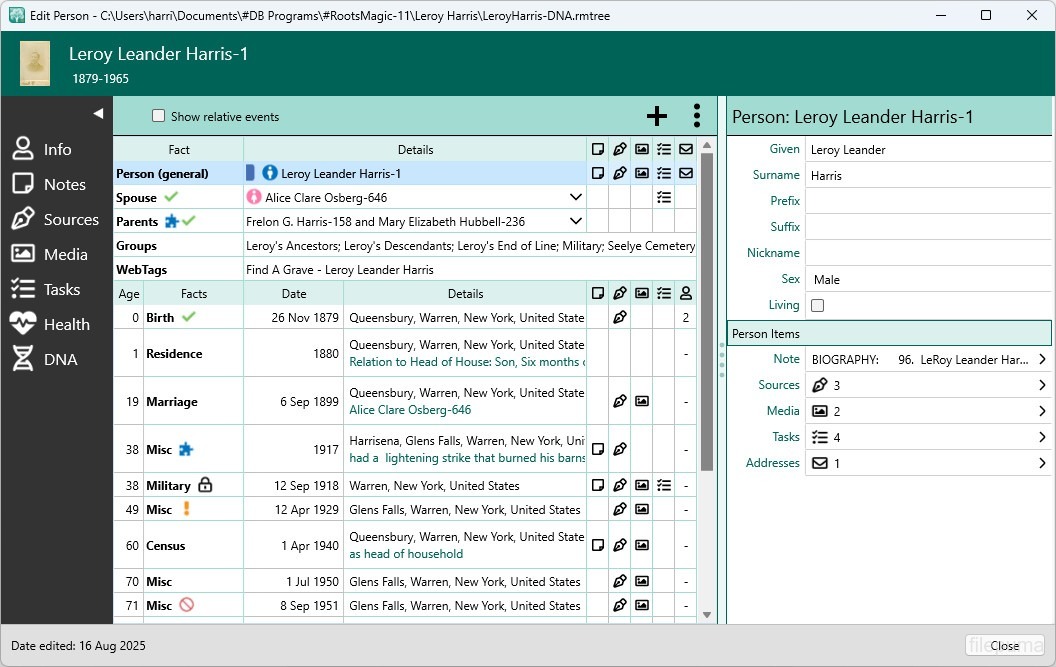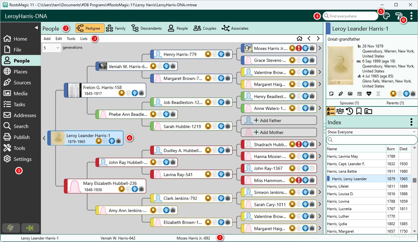 RootsMagic allows users to record comprehensive personal data, including names, dates, places, occupations, notes, and sources. Its flexible charting and reporting tools make it easy to visualize family relationships through pedigree charts, descendant charts, timelines, and custom reports. These features help users better understand their ancestry and share findings with family members in a clear, professional format.