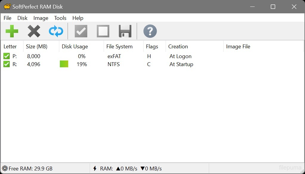 SoftPerfect RAM Disk is a high-performance utility designed to create and manage virtual disks in your system's RAM. By allocating a portion of your computer’s memory as a virtual disk drive, it significantly enhances read and write speeds, leading to improved overall system performance. This software is particularly beneficial for users running high-demand applications or those who require rapid access to frequently used data.