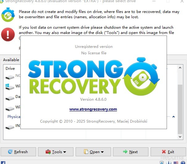 StrongRecovery Portable is a convenient data recovery application designed for users who need to restore lost or deleted files from various storage devices. It runs directly from a USB drive, making it ideal for situations where installation is not possible or practical. This portable format allows users to recover data on different computers without leaving a trace.
