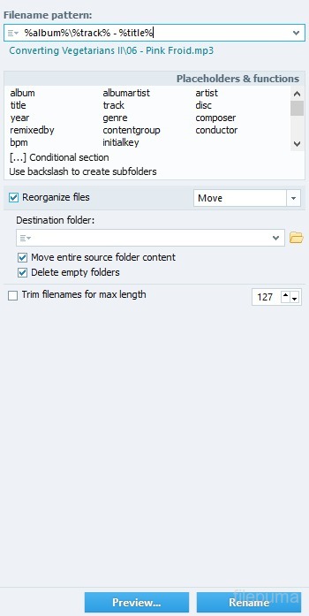 TagScanner allows users to rename files based on tag information or generate tags from filenames. This functionality helps maintain a clean and consistent music library. Users can also edit tag fields manually, ensuring that metadata is accurate and personalized.