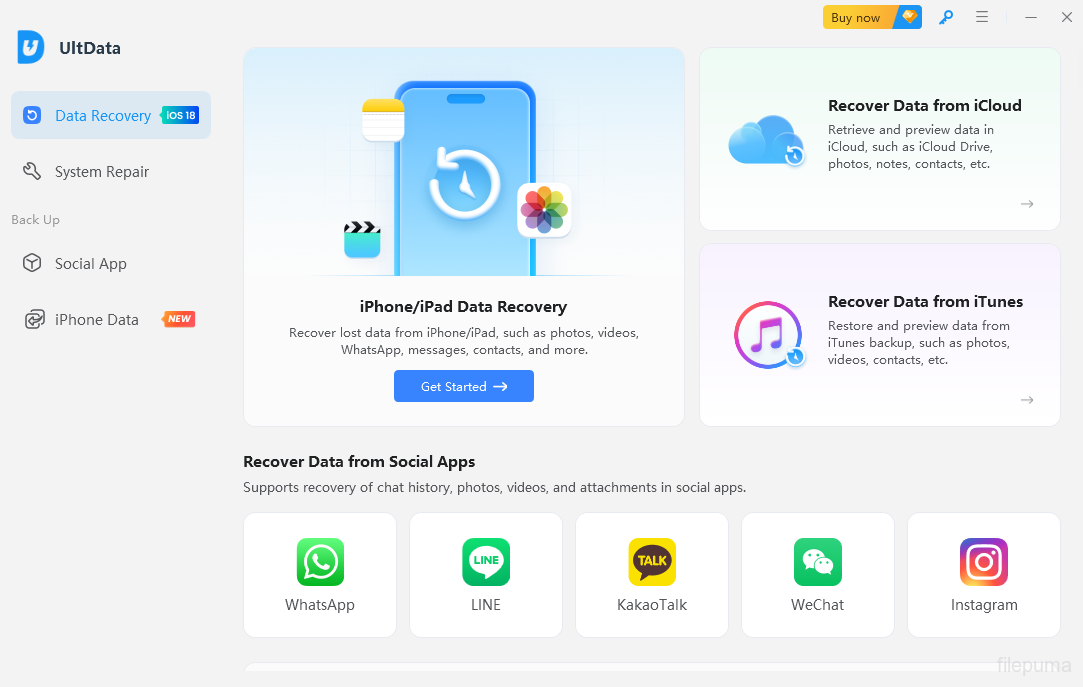 Tenorshare UltData is a data recovery application designed to retrieve deleted or lost files from various devices. It supports recovery from smartphones, tablets, memory cards, USB drives, and computers. The program caters to users facing accidental deletion, system crashes, or formatting issues. With a streamlined interface, it allows quick access to scanning and recovery options.