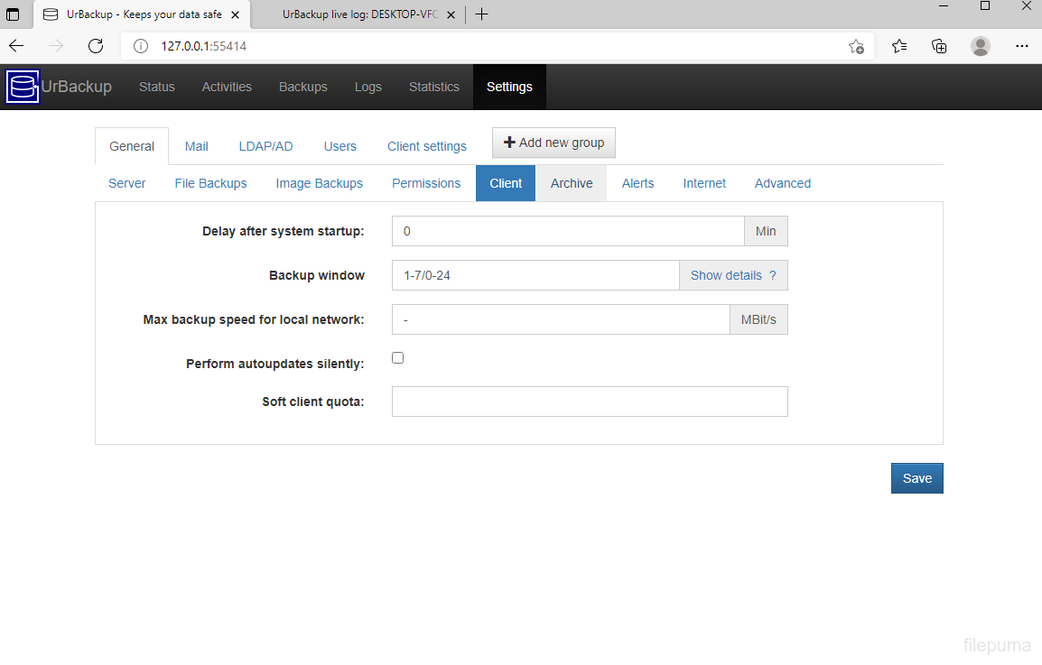UrBackup is a client-server backup system designed to protect data efficiently on both personal computers and network servers. It combines image and file backup techniques to ensure comprehensive coverage, allowing users to restore individual files or complete system images when needed. The software operates with minimal disruption, performing backups in the background and reducing the impact on daily operations.
