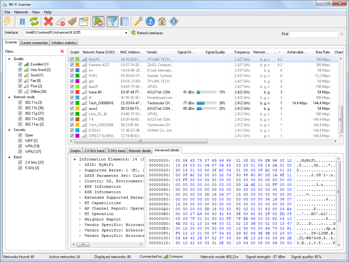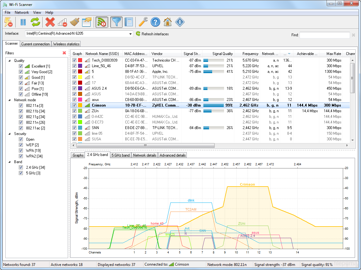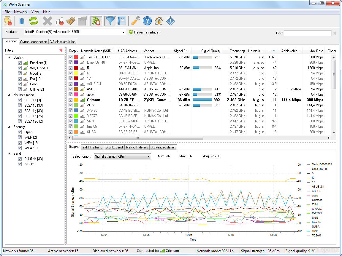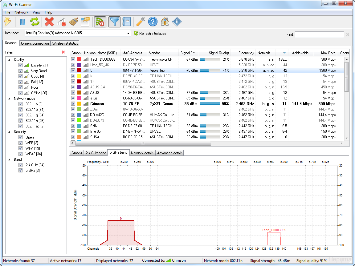 With its clean and straightforward interface, Wi-Fi Scanner is suitable for both beginners and advanced users. It supports a wide range of wireless adapters and works well across different versions of Windows. Users can also sort and filter network data to better understand their surroundings.