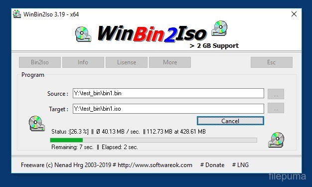 WinBin2Iso Portable supports large BIN files, making it suitable for handling big disc images such as those used for games or software backups. It also maintains the quality and structure of the original file, ensuring the converted ISO works correctly for burning or mounting.
