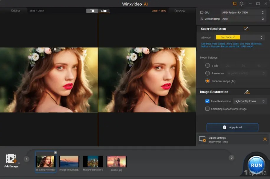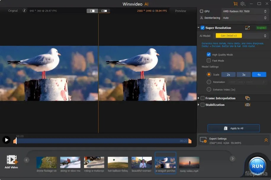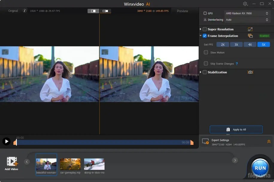Winxvideo AI also supports motion optimization, allowing smoother playback and reducing issues such as jitter or distortion. This makes it particularly effective for enhancing family recordings, archived footage, or media content intended for professional use. With features like frame interpolation, Winxvideo AI can even increase frame rates, ensuring more fluid video experiences across different devices.