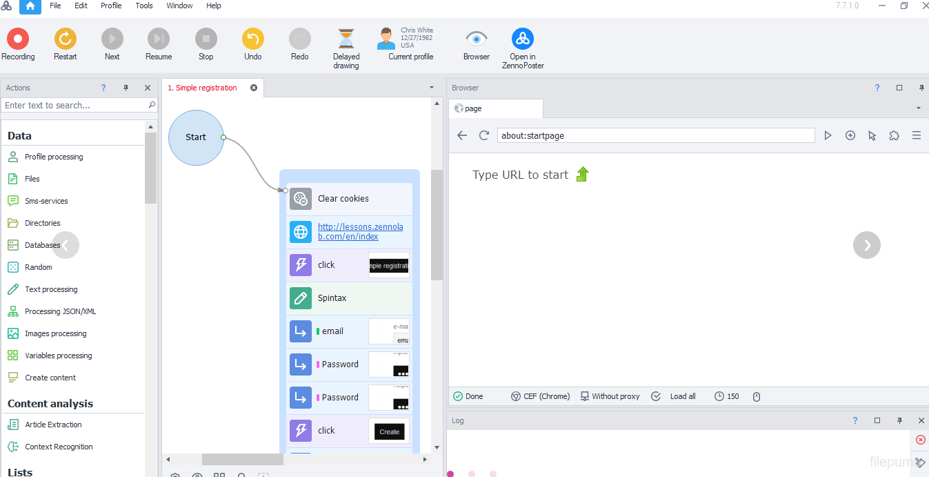 ZennoPoster is an automation tool designed to streamline repetitive online tasks. It enables users to automate web actions such as form submissions, data scraping, and account creation without writing complex code. The software features a visual project editor, allowing users to create automation scenarios using a simple drag-and-drop interface.