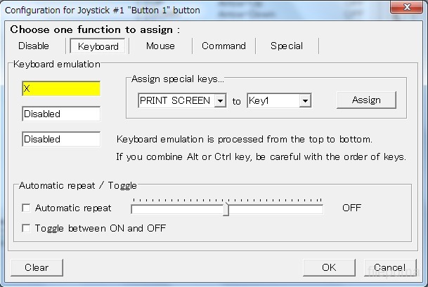 JoyToKeyadmite múltiples perfiles, lo que facilita cambiar configuraciones según la aplicación o el juego en uso. Cada botón y dirección del joystick puede asignarse a entradas únicas de teclado o ratón, lo que permite un control preciso sobre cada función. Además,JoyToKeyadmite la asignación de combinaciones de teclas a un solo botón, mejorando su flexibilidad para tareas complejas.