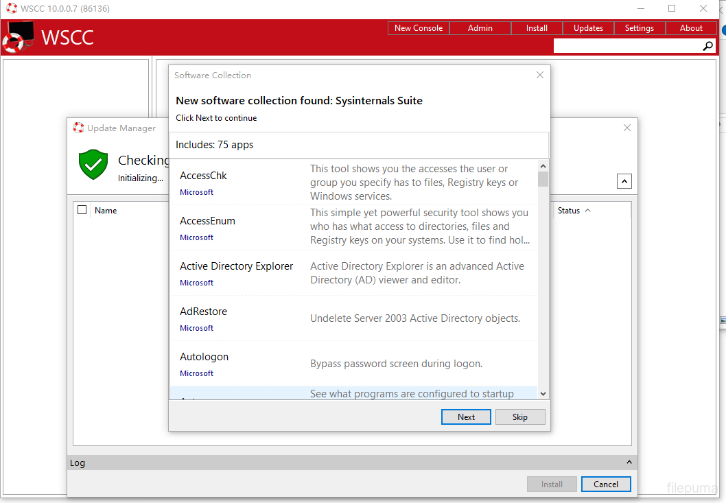 WSCCtidak menyertakan utilitas itu sendiri tetapi membantu mengelola dan memperbaruinya dengan efisien. Dengan menawarkan solusi terpusat, ini meningkatkan alur kerja dan mengurangi kompleksitas bekerja dengan berbagai alat sistem. Mendukung versi 32-bit dan 64-bit dan dapat dijalankan sebagai aplikasi portabel.