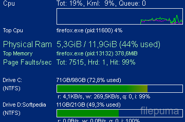 Informazioni Desktopfornisce informazioni dettagliate su vari aspetti di un computer, inclusi l'utilizzo della CPU, il carico della memoria, l'attività del disco, le prestazioni della rete e il tempo di attività del sistema. Gli utenti possono personalizzare quali metriche vengono visualizzate e modificare il layout, il carattere e i colori in base alle proprie preferenze. Il suo design non intrusivo garantisce che le informazioni rimangano visibili senza interferire con le attività quotidiane sullo schermo.