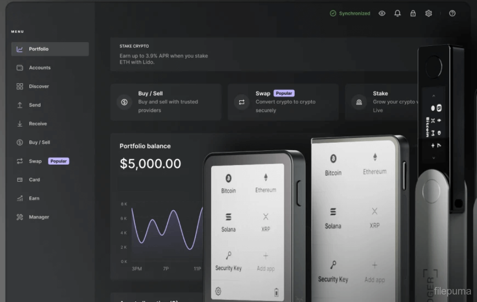 Ledger Live Desktopoffre un modo senza interruzioni per gestire vari asset digitali. Gli utenti possono inviare e ricevere criptovalute, monitorare il loro portafoglio in tempo reale e accedere a informazioni dettagliate sui loro investimenti. Ledger Live Desktop supporta un'ampia gamma di criptovalute, garantendo versatilità per diverse esigenze di investimento.