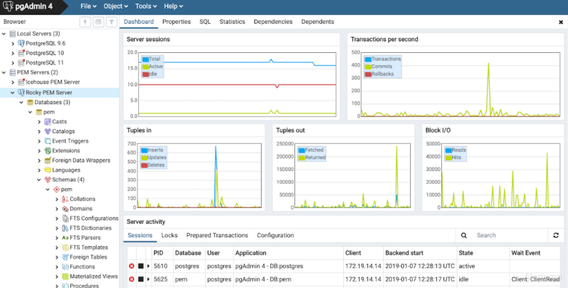pgAdmin는 인기 있는 오픈 소스 관리 도구로서 PostgreSQL, 관계형 데이터베이스 시스템을 위한 것입니다. 이 도구는 그래픽 인터페이스를 제공하여 초보자와 경험자 모두가 데이터베이스 관리를 쉽고 직관적으로 할 수 있게 합니다. 이 도구는 광범위한 PostgreSQL 기능을 지원하여 사용자가 데이터베이스, 스키마, 테이블 등을 효율적으로 관리할 수 있도록 합니다.