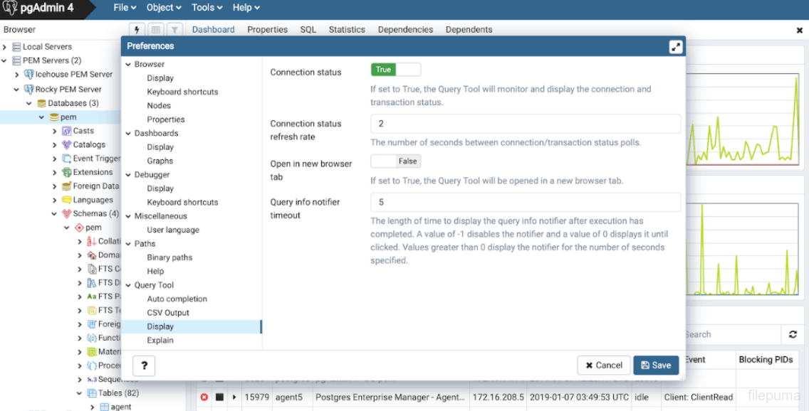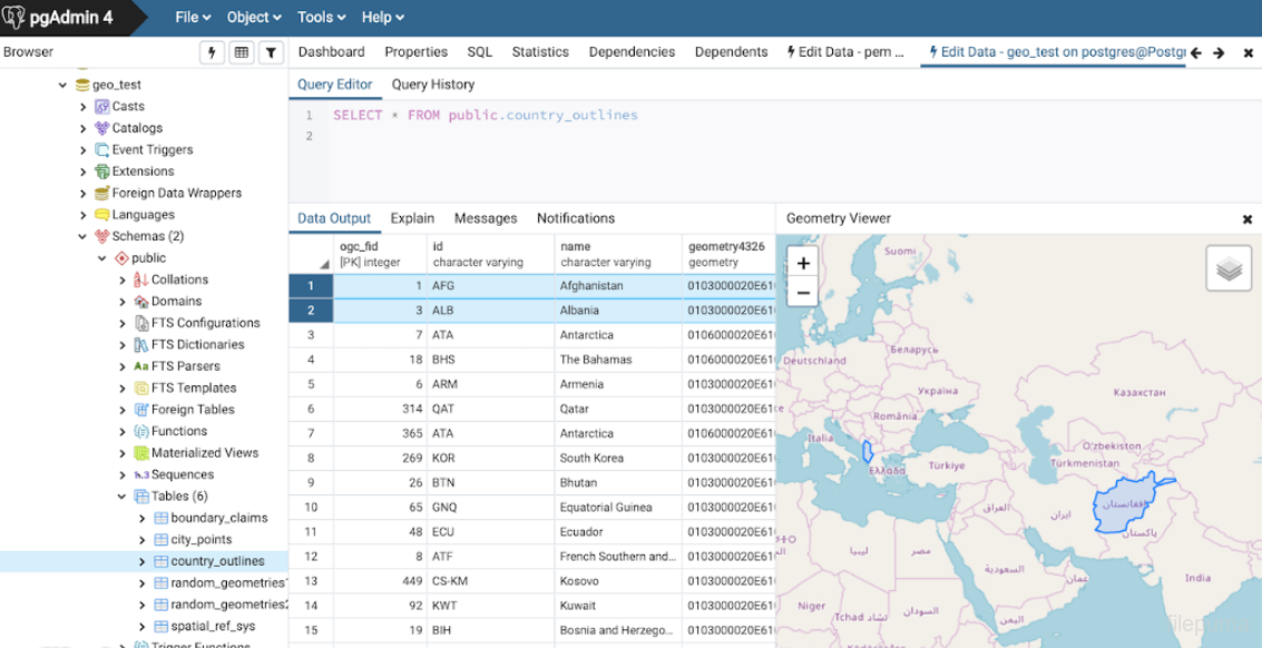 pgAdmin견고한 쿼리 도구를 제공하며, SQL query editor는 구문 강조, 자동 완성, 쿼리 실행 계획을 포함합니다. 사용자는 복잡한 쿼리 또는 간단한 데이터 검색 작업을 수행하여 데이터베이스와 상호 작용할 수 있습니다. 또한 쿼리 및 데이터베이스 성능을 최적화하기 위해 실행 계획을 시각화하는 도구도 제공합니다.