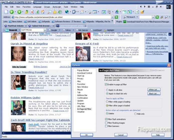 SlimBrowser offers various functions and options so that you can go where you want and get whatever you want over the web with as few clicks as possible. It incorporates a large collection of powerful features like built-in popup killer, skinned window frame, form filler, site group, quick-search, auto login, hidden sites, built-in commands and scripting, online translation, script error suppression, blacklist / white list filtering, URL Alias.