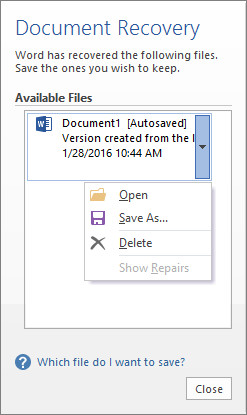 Use Document Recovery
